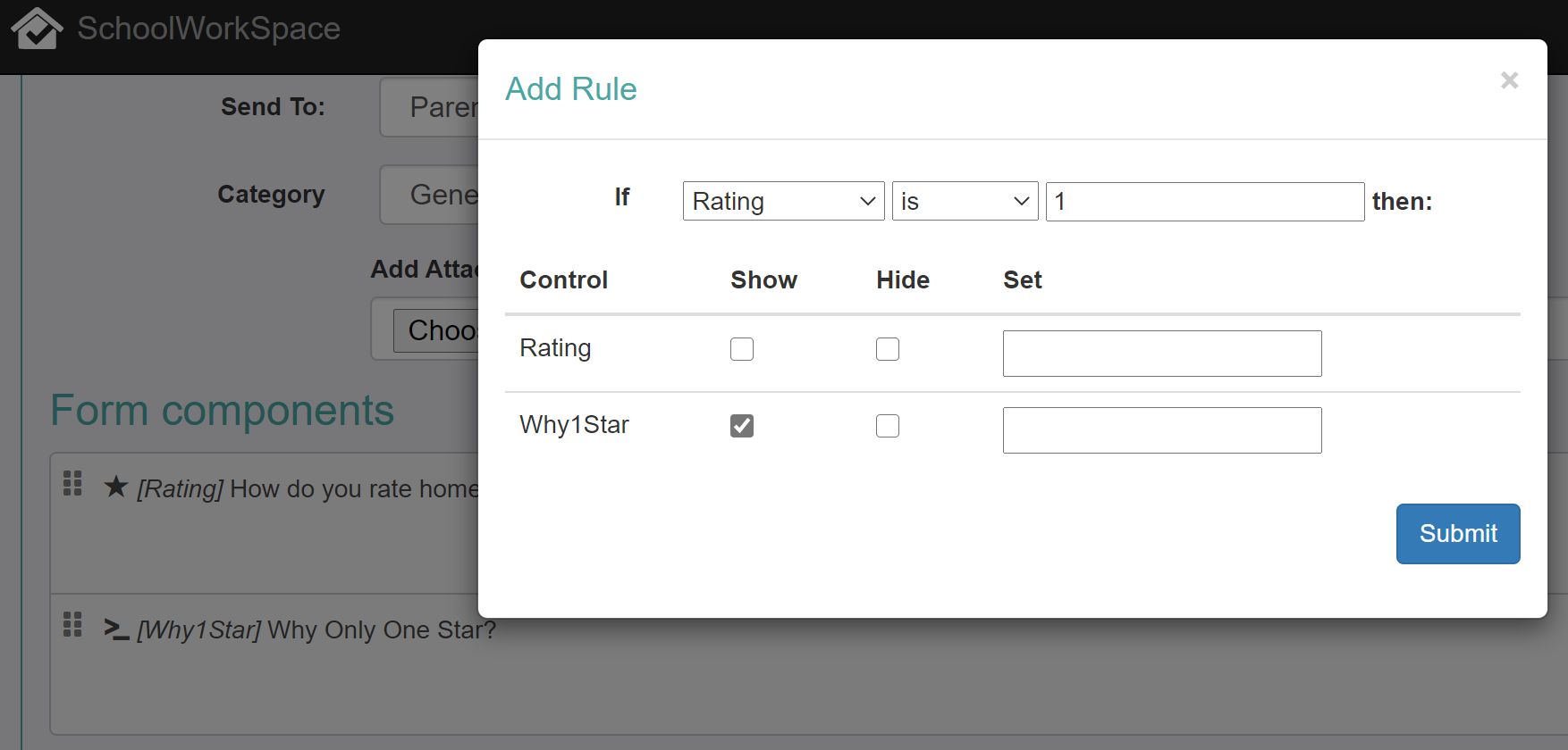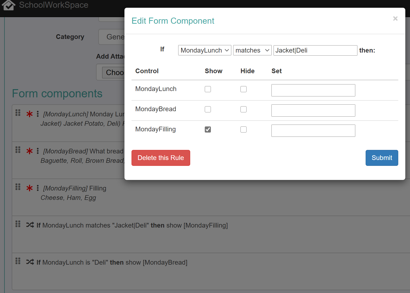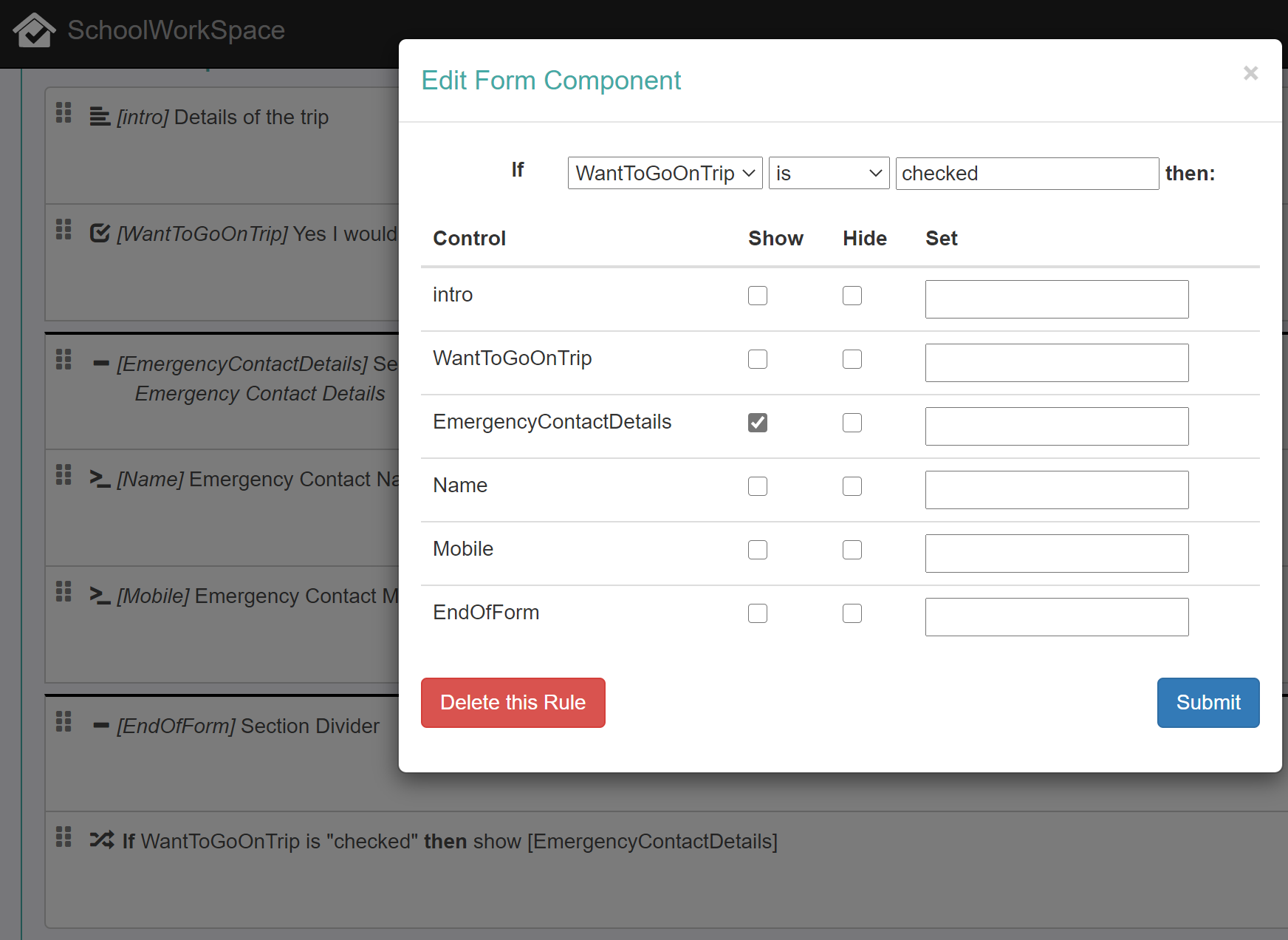Adding rules to forms allow you to show and hide form components based on other form inputs.