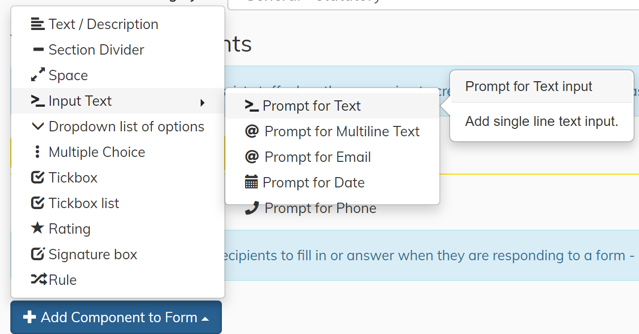 There are a variety of different elements you can add to a Form
