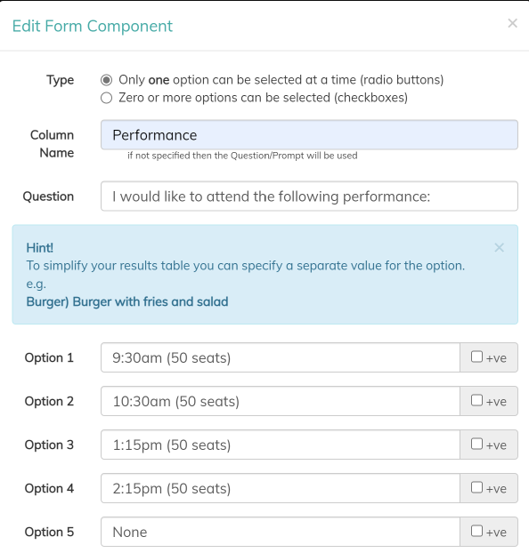 You can edit the content of the form to update the values if more or less seats / tickets become available and these will be reflected on the form when the parents click on the link.