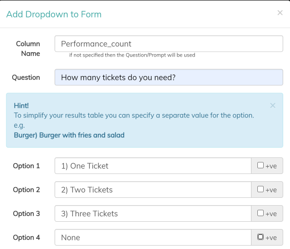 To allow the user to select the number of tickets they want (default is just 1 ticket) add in another form element to allow them to select the number of tickets: